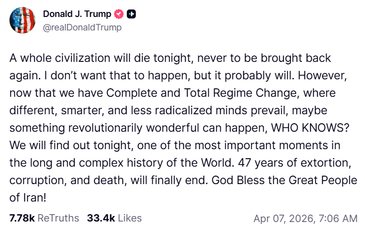 Image Credit: grok ai The American people are split regarding President Donald Trump’s loaded Truth Social message on Tuesday morning threatening Iran and his Monday suggestion that the “entire country could be taken out in one night.”