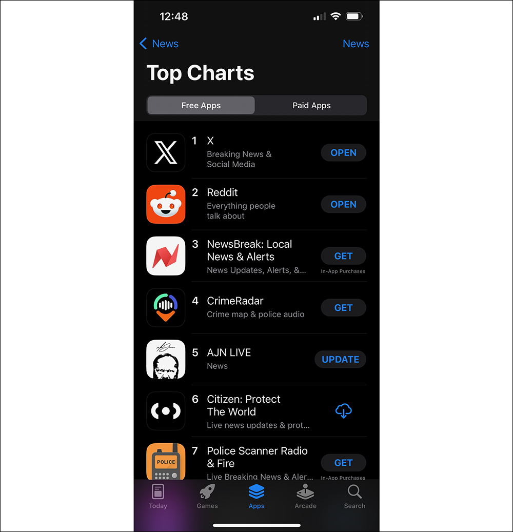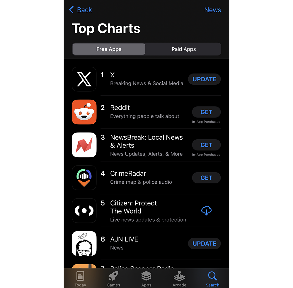 The “AJN Live” app‘s #6 spot put it above other corporate news behemoths’ apps, like Bloomberg, NPR, the Associated Press, Fox News, The Wall Street Journal, the BBC, Google News, The Atlantic, Reuters and others.