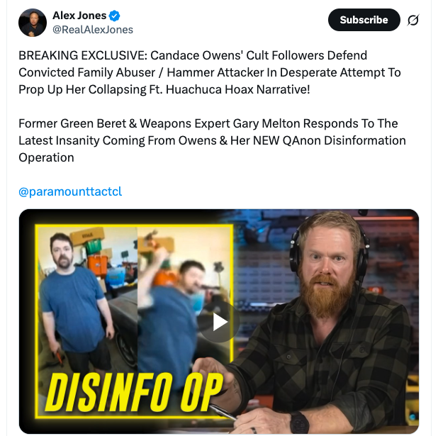 Image Credit: banned.video Former Green Beret and weapons expert Gary Melton (@paramounttactcl) responds to the latest insanity coming from Owens and her new QAnon disinformation operation.
