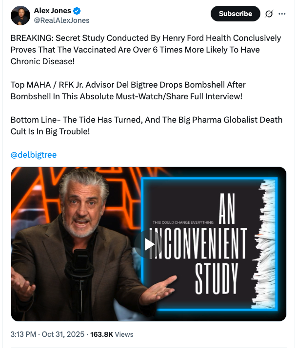 — Alex Jones (@RealAlexJones) October 31, 2025