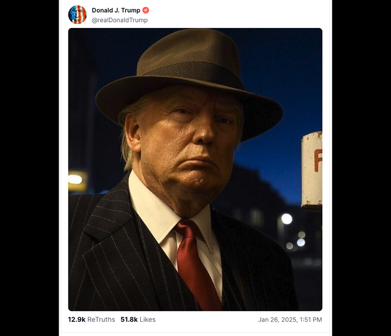 As the international spat played out, Trump shared an AI-generated image of himself in a gangster-style zoot suit, with a sign bearing the phrase FAFO in the background, and also featuring a smiley face.