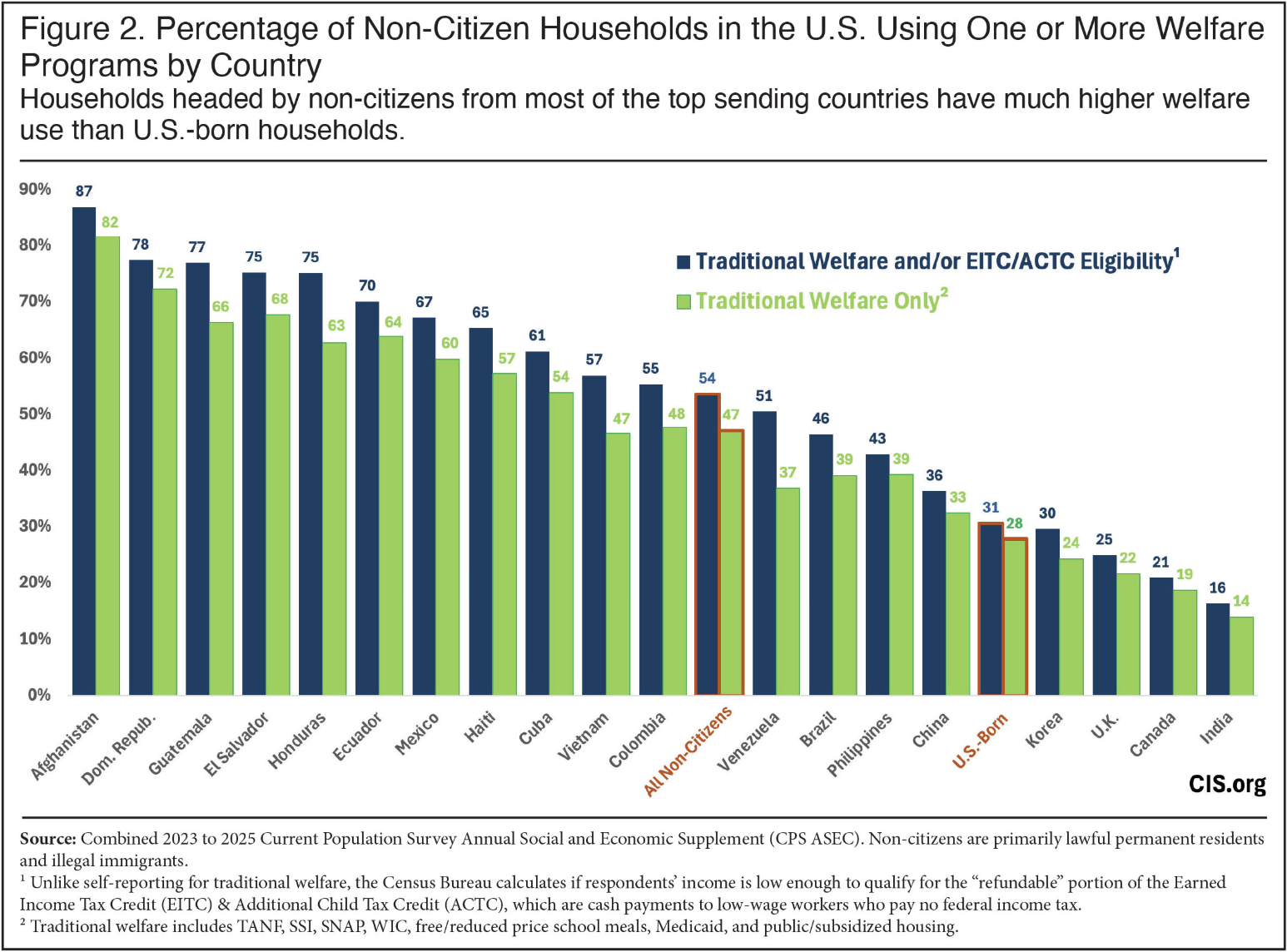 “Meanwhile, immigrant households from Korea, the United Kingdom, Canada, and India have the lowest welfare usage among the nation’s immigrant population.”