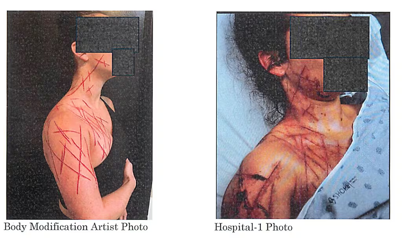 Investigators alleged Greene had paid a body mod artist $500 to scar her body with a pattern she’d provided them.