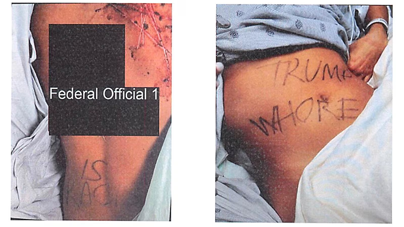 When officers found Greene, she was lying with her hands and feet zip-tied, and her shirt pulled over her head. She was crying loudly and yelling “He has a gun, he has a gun.” She had cuts on her body and the phrase “TRUMP WHORE” written across her stomach and Van Drew “IS RACIST” on her back.