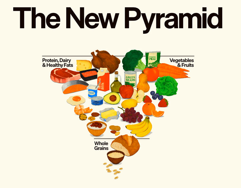 Image Credit: infowars composite The Department of Health and Human Services and the USDA unveiled new dietary guidelines Wednesday, introducing an inverted food pyramid recommending whole milk, protein and healthy fats, while discouraging refined grains, added sugar and processed foods.