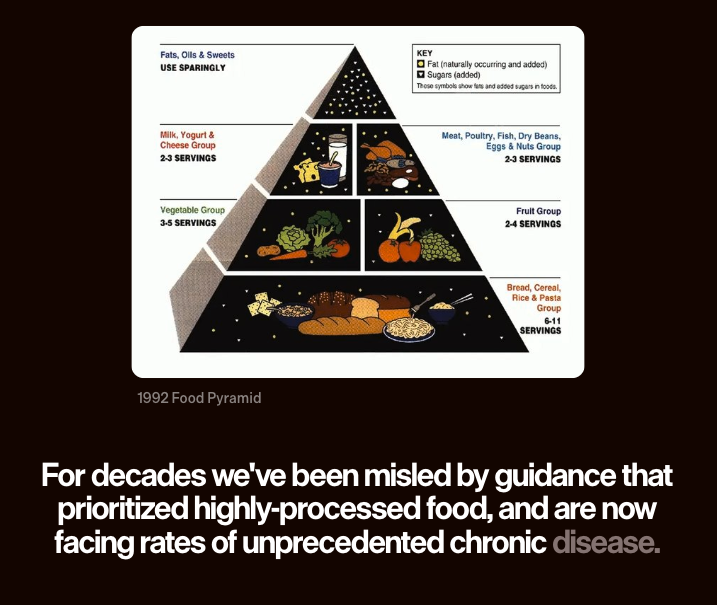 “Diets rich in vegetables and fruits reduced disease risk more effectively than many drugs. Whole grains outperform refined carbohydrates. Added sugars, especially sugar-sweetened beverages, drive metabolic disease – and today our government declares war on added sugar.”