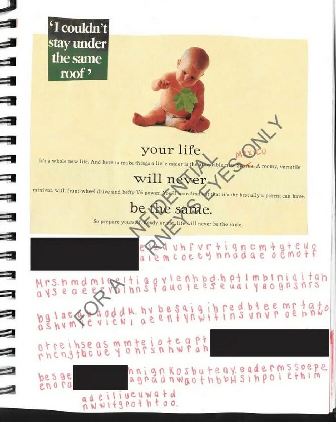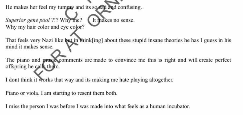 In another document from the Epstein dump, a victim writes a coded diary where she describes being a ‘human incubator’ who was forced to give birth to a child that was taken from her.