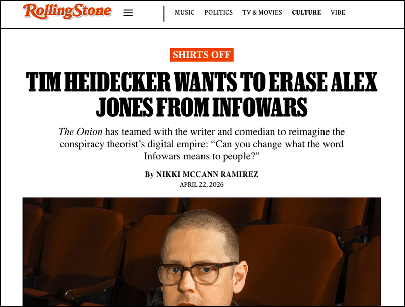 Image Credit: infowars composite The comedian hired by The Onion to head up Infowars, Tim Heidecker, says he likes to wear Alex Jones’ identity as a skin suit, while bragging he wants to eliminate him from the brand he created.