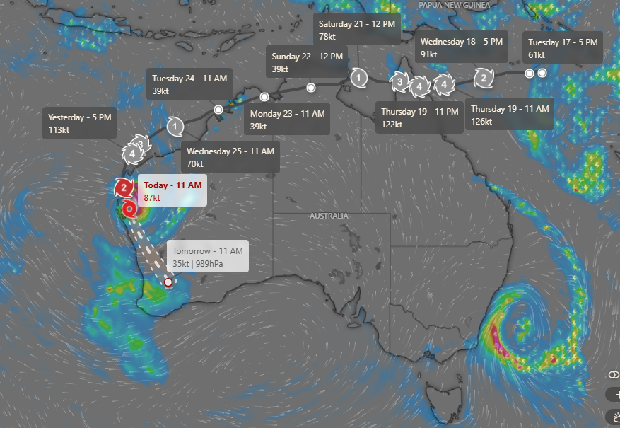 The incredible atmospheric event comes as Tropical Cyclone Narelle has been slamming Australia’s western coast, as it headed south after whipping around the continent’s northern region while making landfall four times.