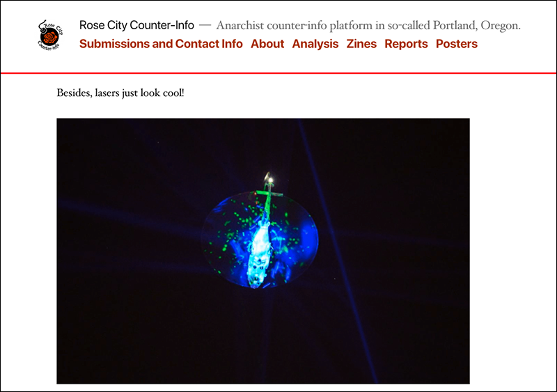 The Portland Police also use aerial surveillance to target protests and usually have one of their Cessna spy planes in the sky. In 2020 and 2021, PPB used the plane to target specific protesters for arrest. Let’s blind all the eyes in the sky!