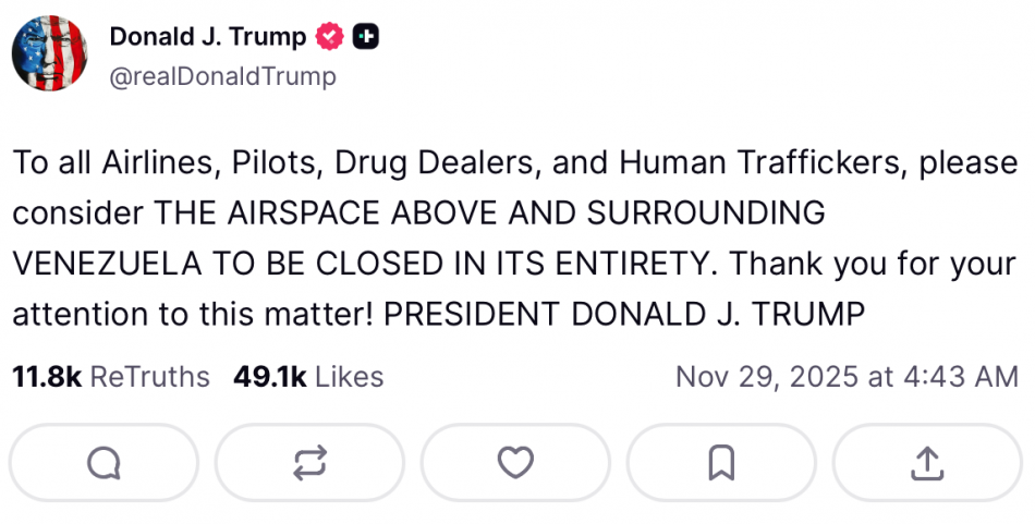 On Saturday, President Trump gave us a very clear signal about what is coming when he publicly declared the entirety of Venezuela’s airspace to be closed…