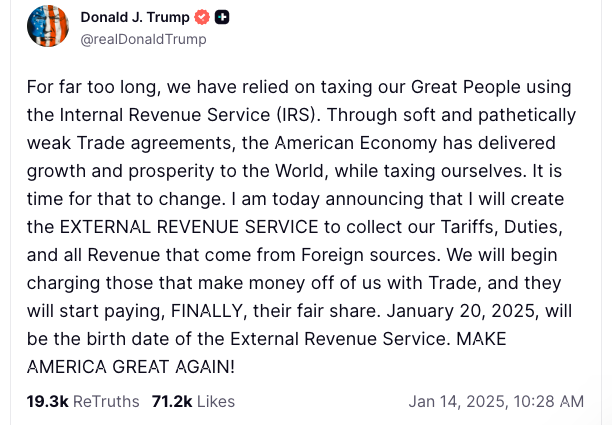For his part, Trump has hinted at eliminating federal income taxes for earners under $200K, and replacing the Internal Revenue Service with an External Revenue Service that would collect tariffs and tax foreigners instead of residents.