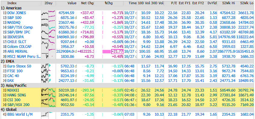 Even with these high-level trade meetings, Asian markets traded more softly this morning, led by weakness in technology stocks. South Korea and Taiwan underperformed, while Chinese equities remained rangebound. Japan’s market consolidated, with the Nikkei closing down a little more than half a percent.