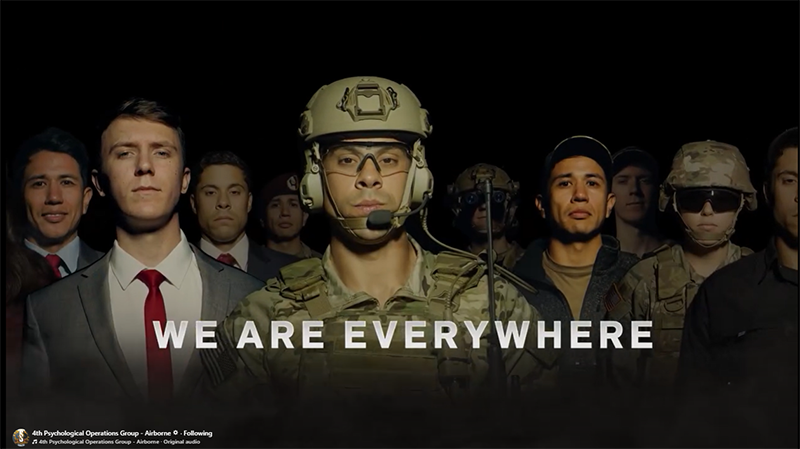 The video, released by the 4th Psychological Operations Group (Airborne) headquartered in Fort Bragg, North Carolina, tells potential recruits that wars are not only fought kinetically but through words.