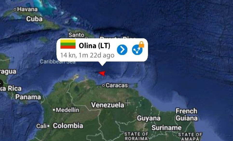 Olina, previously sanctioned for transporting Russian oil, was last tracked near Venezuela.