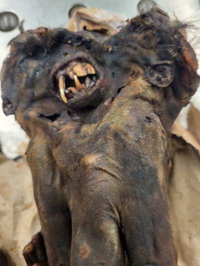 Gruesome photographs indicate the primate was almost fully intact and still had teeth and fur.