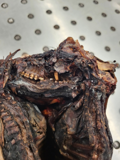 While the intended purpose of the carcass remains unclear, it likely would have been consumed as “bush meat” or used in voodoo rituals, as is common in many African nations.