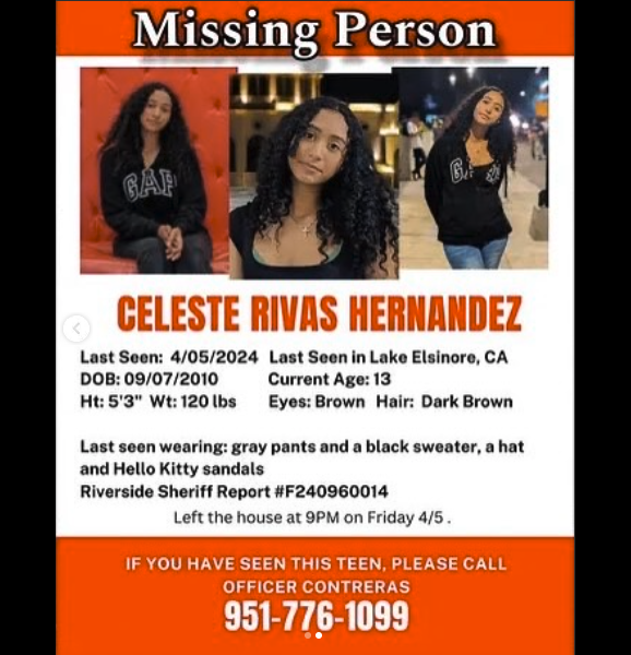 Hernandez was 13 when she was reported missing in April 2024 from Lake Elsinore.
