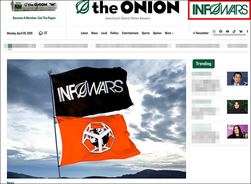 On Monday, TheOnion.com website featured a redirect to theonion.com/info, and a hopeful, albeit completely fabricated article titled, “At Long Last, InfoWars Is Ours,” similar to an article published in 2024 before the site’s fake auction purchase fell through.