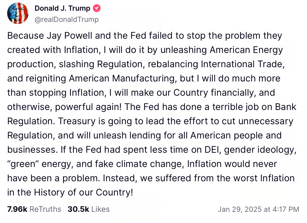 The President has been criticizing the Chairman since the very first days of his second administration. In January 2025 Trump said: