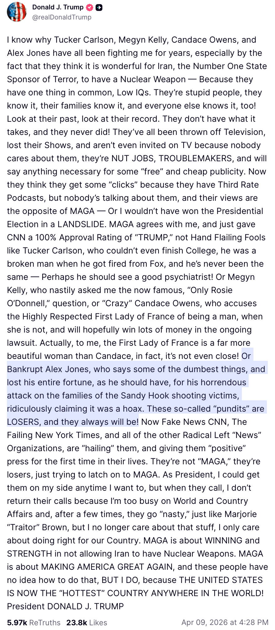 — Alex Jones (@RealAlexJones) April 17, 2026